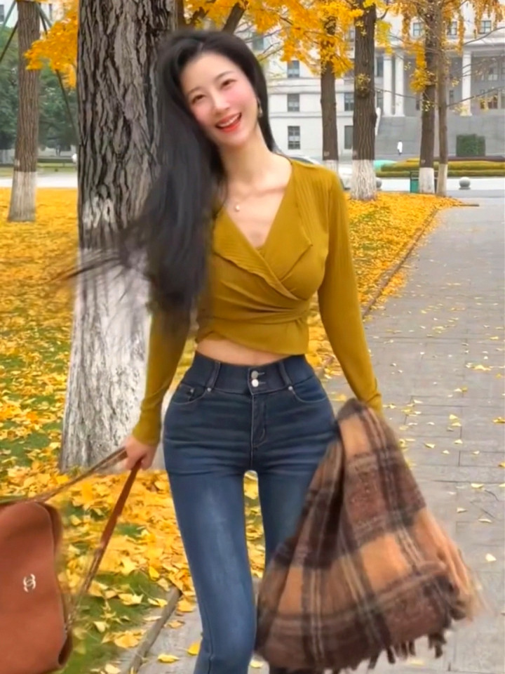 秋叶风中人影长